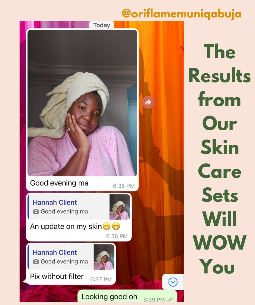 Our Skin Care sets last for 60 to 90 days. Using a little of each product in the set for your skin care routine is what will guarantee you the best results.